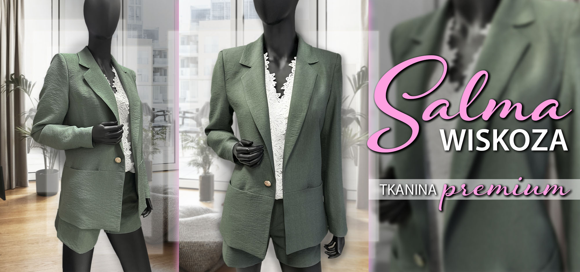 Wiskoza Salma stanowi połączenie włókien naturalnego pochodzenia z domieszką nylonu. Jest lekka, zwiewna i oddychająca, jednocześnie posiada mocny splot. Głównym atutem tkaniny jest jej delikatna faktura, która nawiązuje swą formą do lnu.
