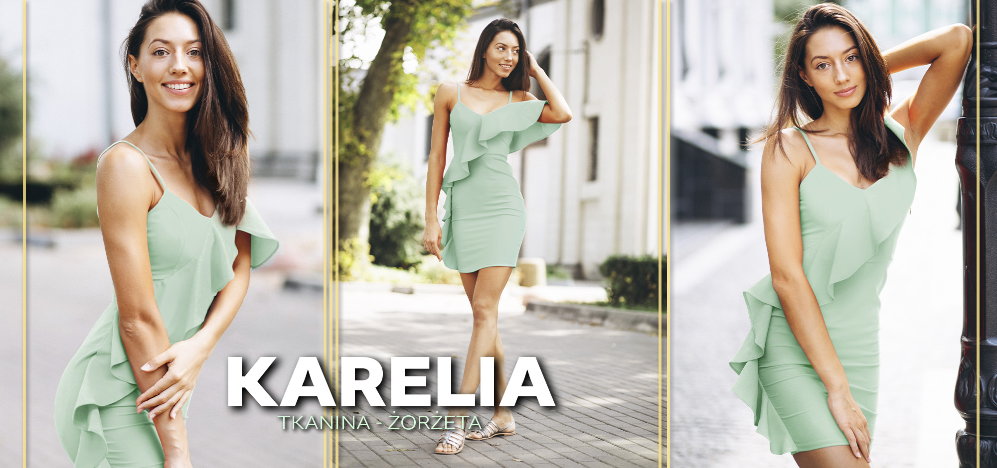 Gładki materiał karelia jest ponadczasowy i uniwersalny. Spełnia praktycznie wszystkie oczekiwania co do tkaniny na stroje zakładane na co dzień jak i od święta. Z karelii można uszyć właściwie cały strój złożony z: